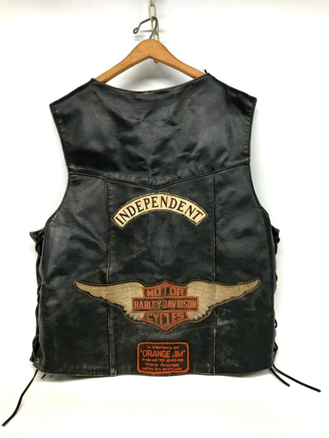 Vintage Black Leather Harley Davidson Vest All American Rider Etsy Uk